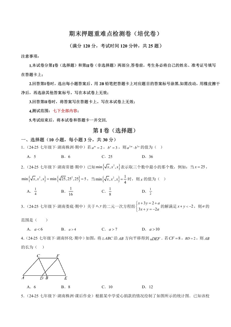 期末押题重难点检测卷(培优卷)(考试范围:七下全部内容)-(湘教版)(含答案)QXSXXJ-0240