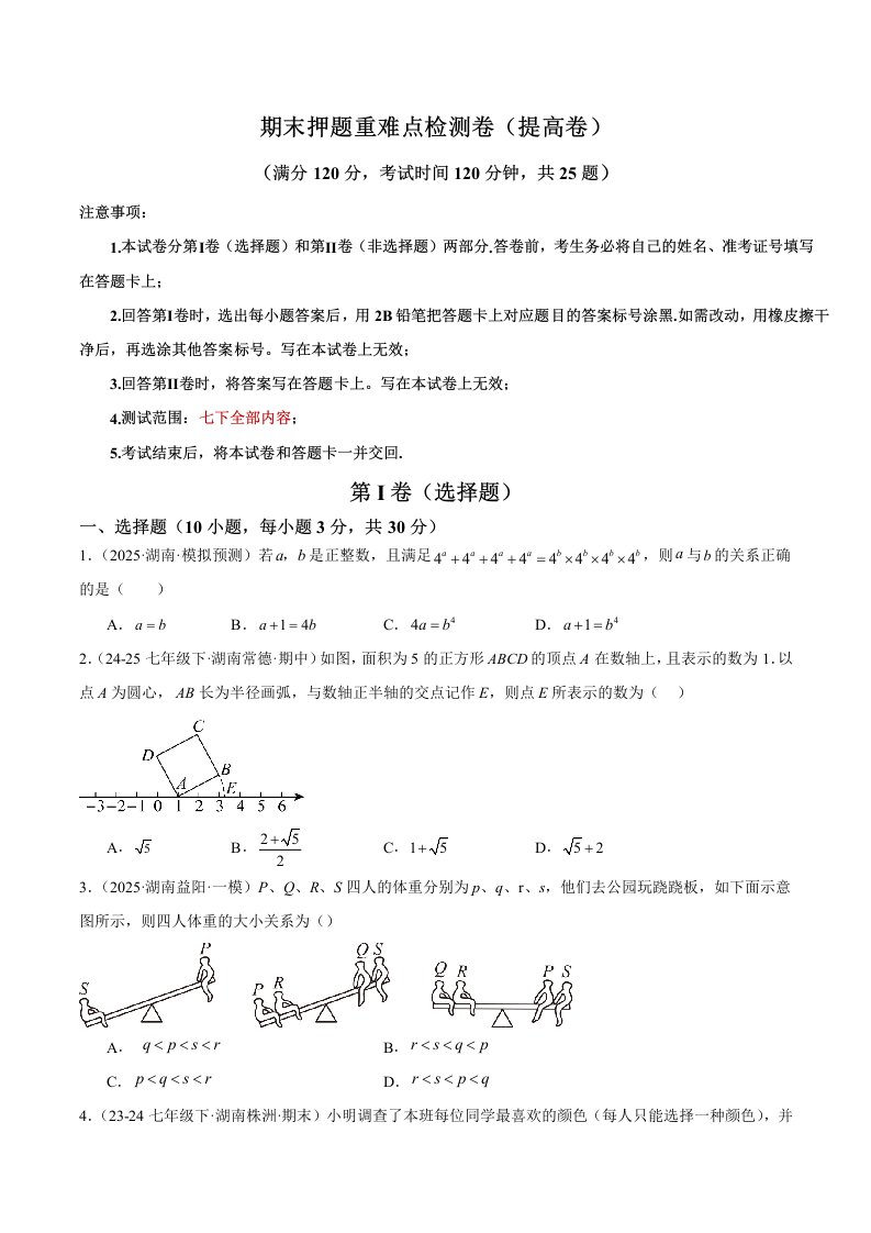 期末押题重难点检测卷(提高卷)(考试范围:七下全部内容)-(湘教版)(含答案)QXSXXJ-0243