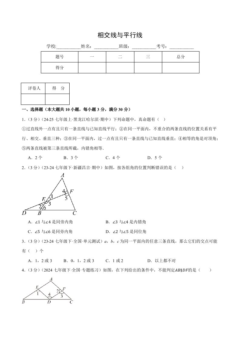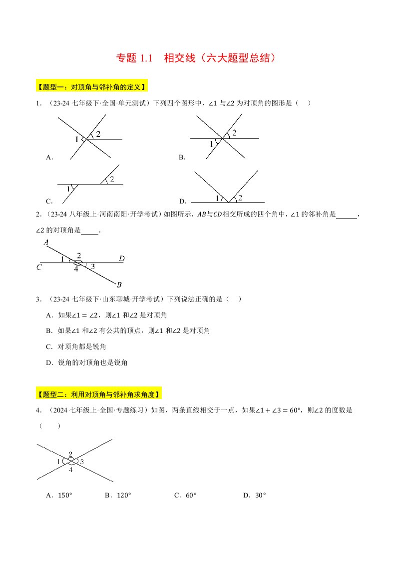 七下数学 专题1.1 相交线(六大题型总结)(压轴题专项讲练)(浙教版)(含答案)QXSXZJ-0220