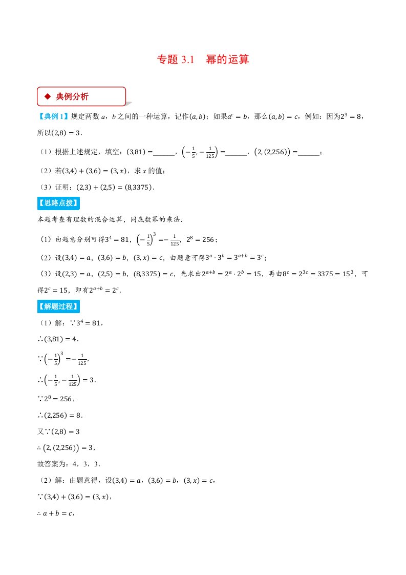 七下数学 专题3.1 幂的运算(压轴题专项讲练)(浙教版)(含答案)QXSXZJ-0240