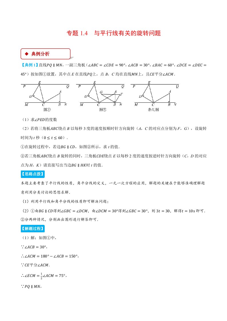 七下数学 专题1.4 与平行线有关的旋转问题(压轴题专项讲练)(浙教版)(含答案)QXSXZJ-0226