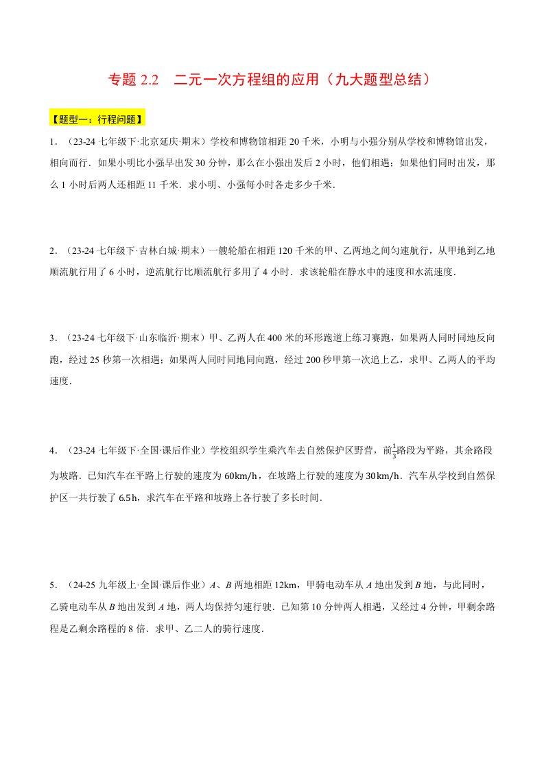 七下数学 专题2.2 二元一次方程组的应用(九大题型总结)(压轴题专项讲练)(浙教版)(含答案)QXSXZJ-0234
