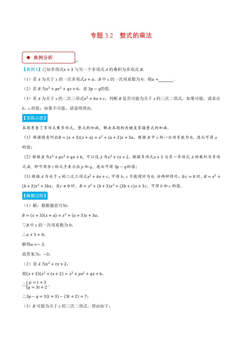 七下数学 专题3.2 整式的乘法(压轴题专项讲练)(浙教版)(含答案)QXSXZJ-0242