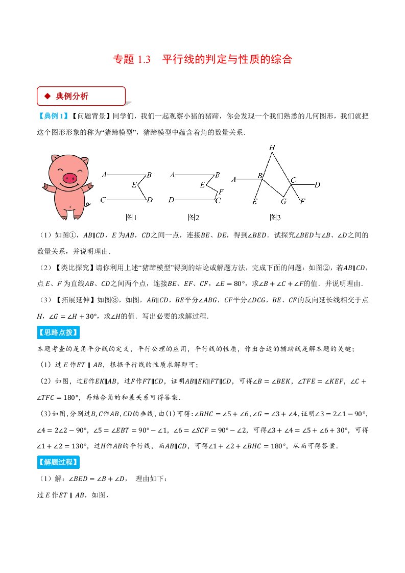 七下数学 专题1.3 平行线的判定与性质的综合(压轴题专项讲练)(浙教版)(含答案)QXSXZJ-0224