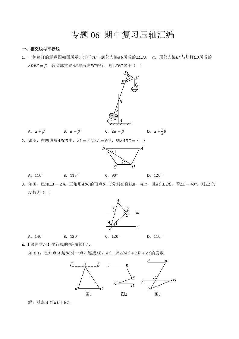 七下数学 专题06 期中复习压轴汇编(含答案)QXSXRJ-0192