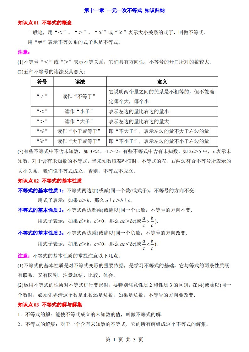 七下数学苏科 第11章 一元一次不等式(知识归纳)QXSXSK-0007