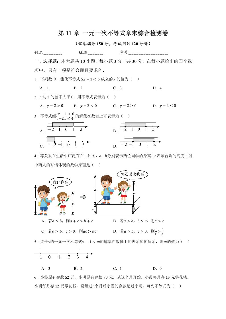 七下数学苏科 第11章 一元一次不等式章末综合检测卷(含答案)QXSXSK-0061