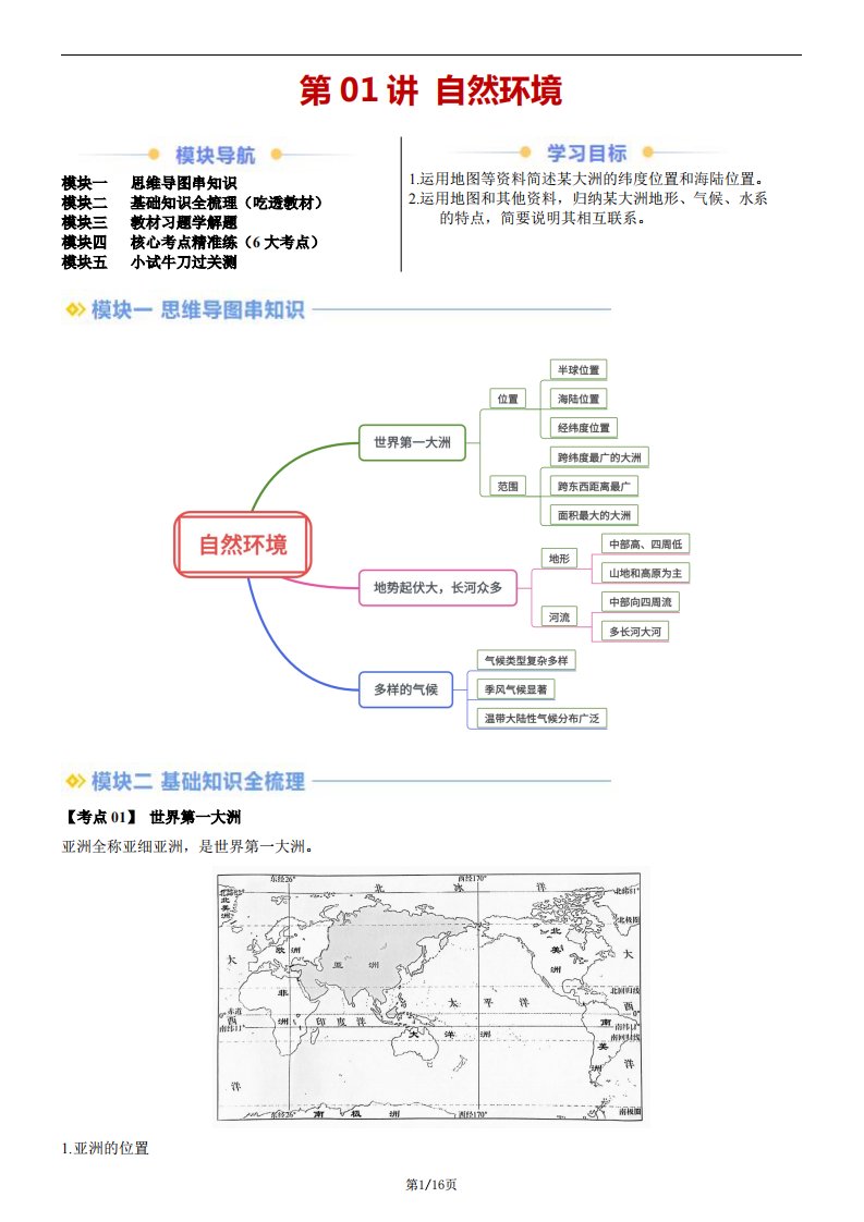 【七下人教地理】第01讲 自然环境(含答案)QXDLRJ-0137