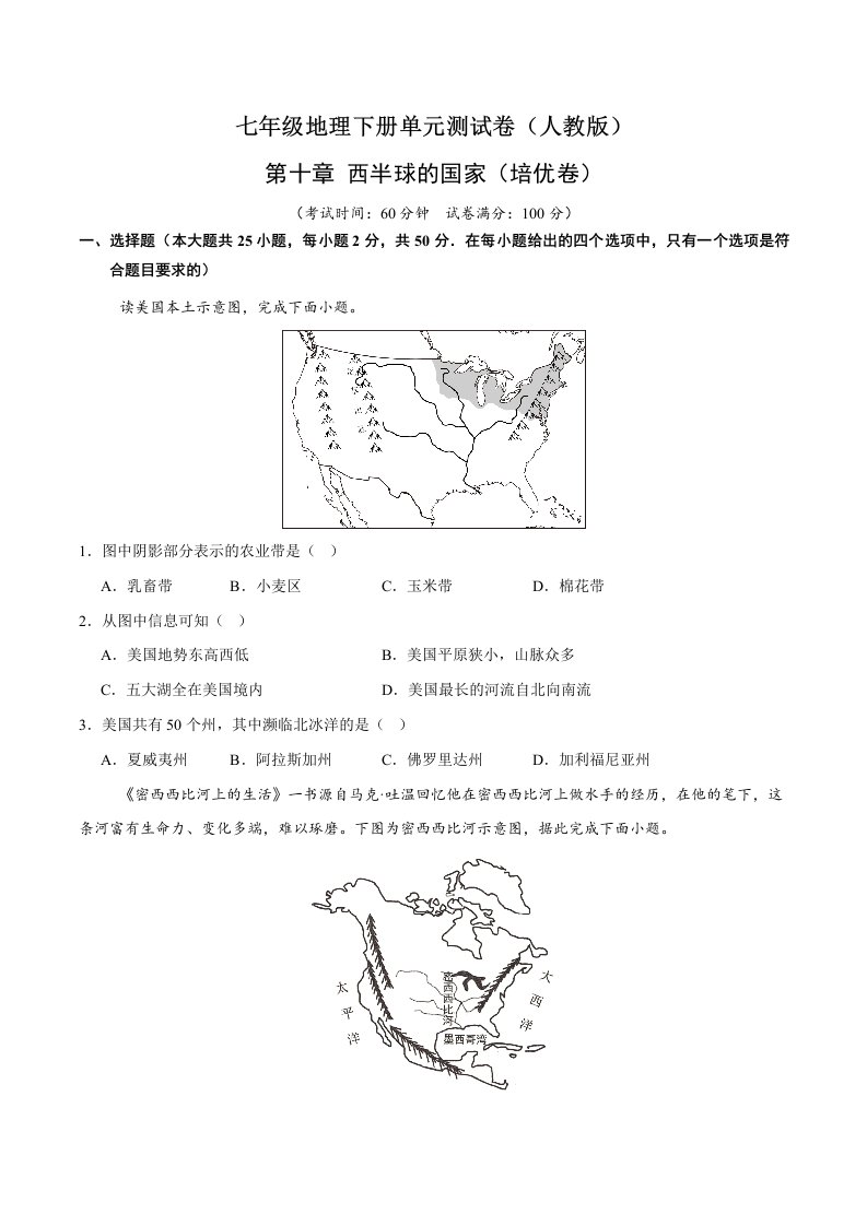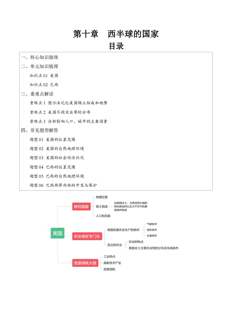 七下地理 第十章 西半球的国家(知识清单)(含答案)QXDLRJ-0021