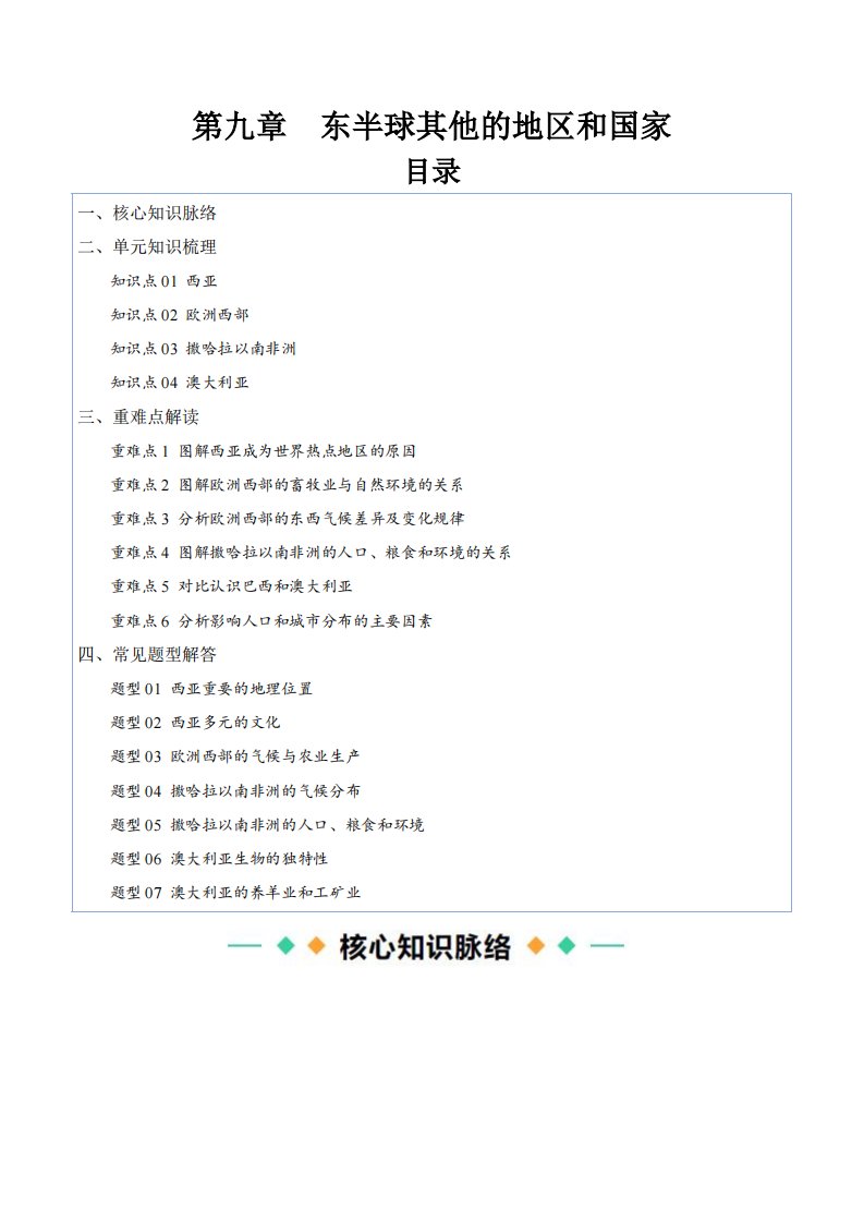 七下地理 第九章 东半球其他的地区和国家(知识清单)(含答案)QXDLRJ-0015