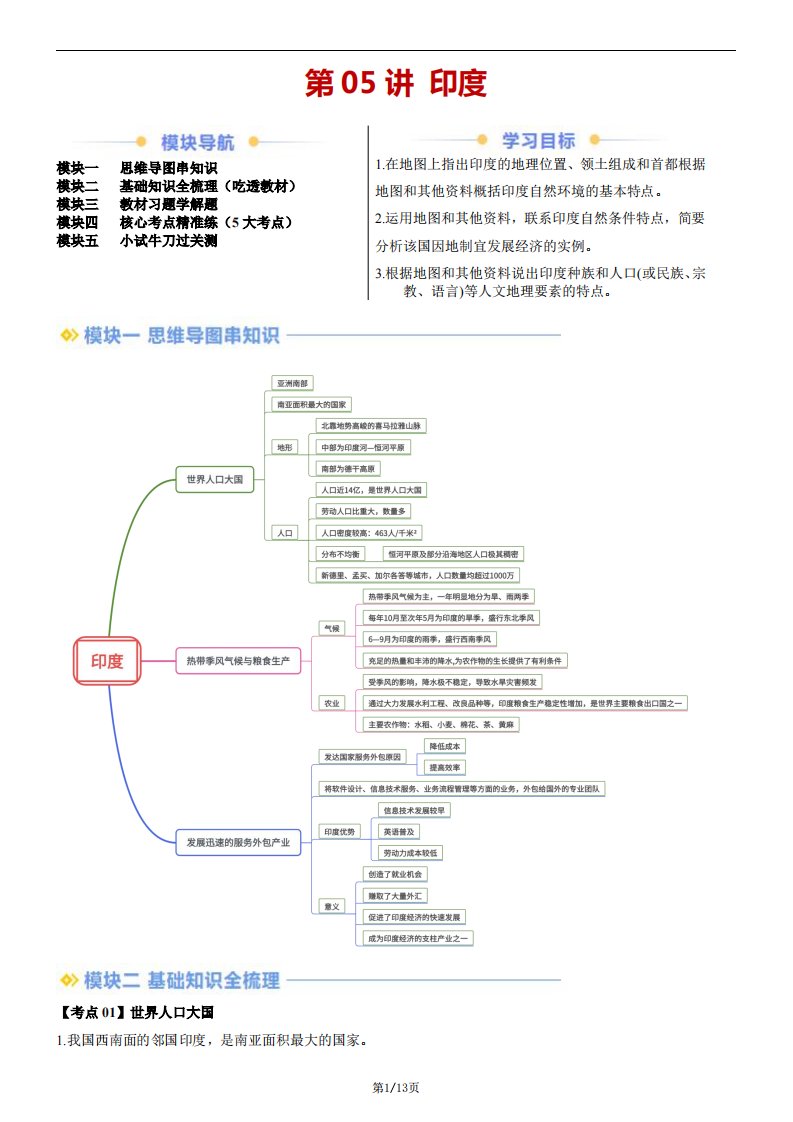 【七下人教地理】第05讲 印度(含答案)QXDLRJ-0145