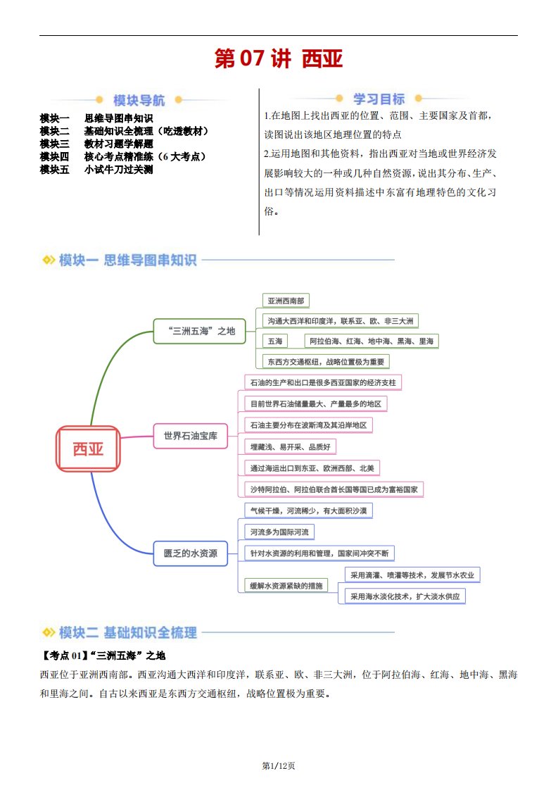 【七下人教地理】第07讲 西亚(含答案)QXDLRJ-0149