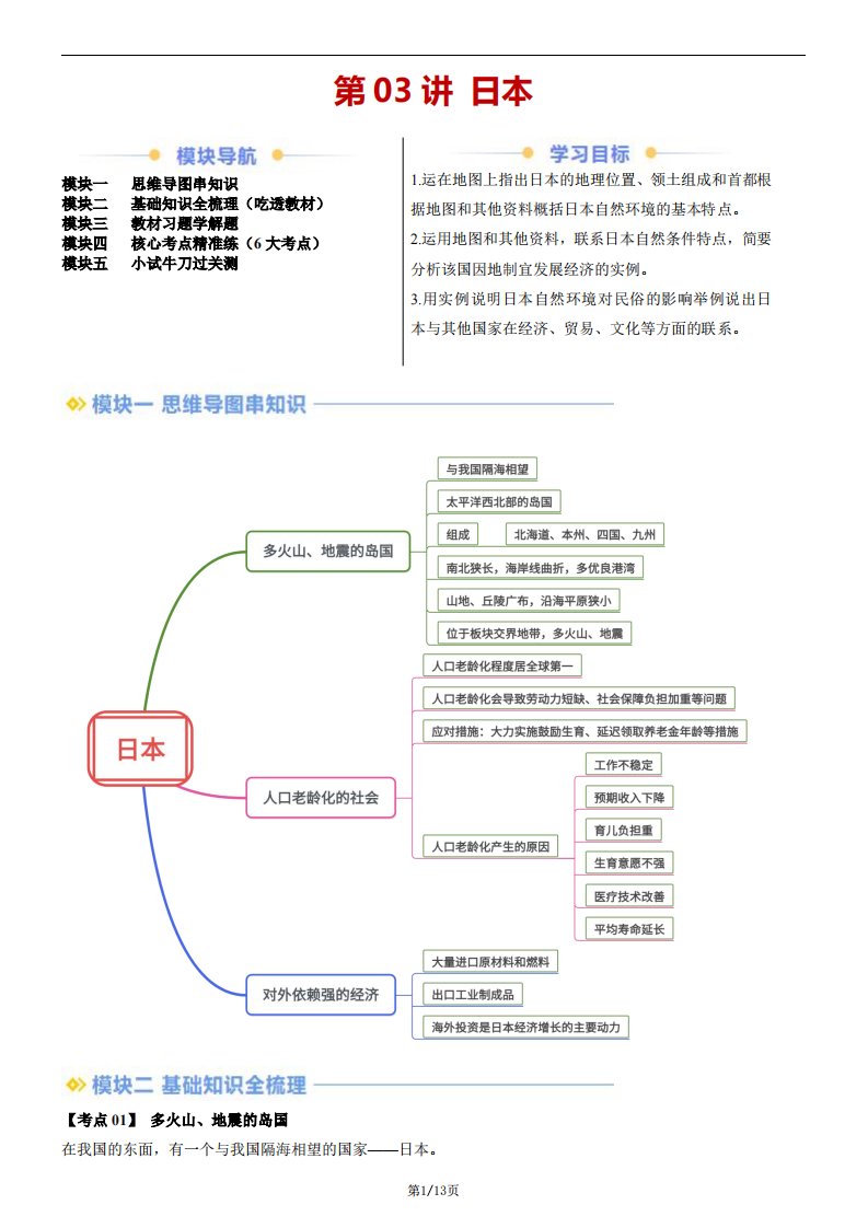 【七下人教地理】第03讲 日本(含答案)QXDLRJ-0141