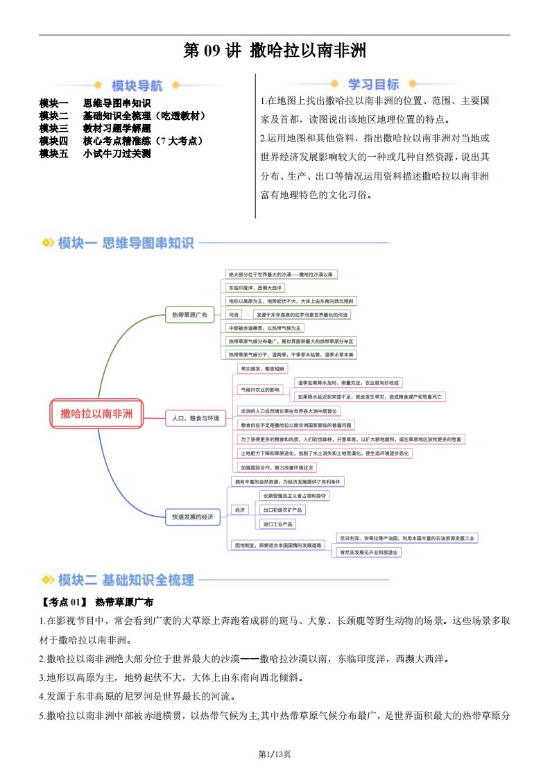 【七下人教地理】第09讲 撒哈拉以南非洲(含答案)QXDLRJ-0153