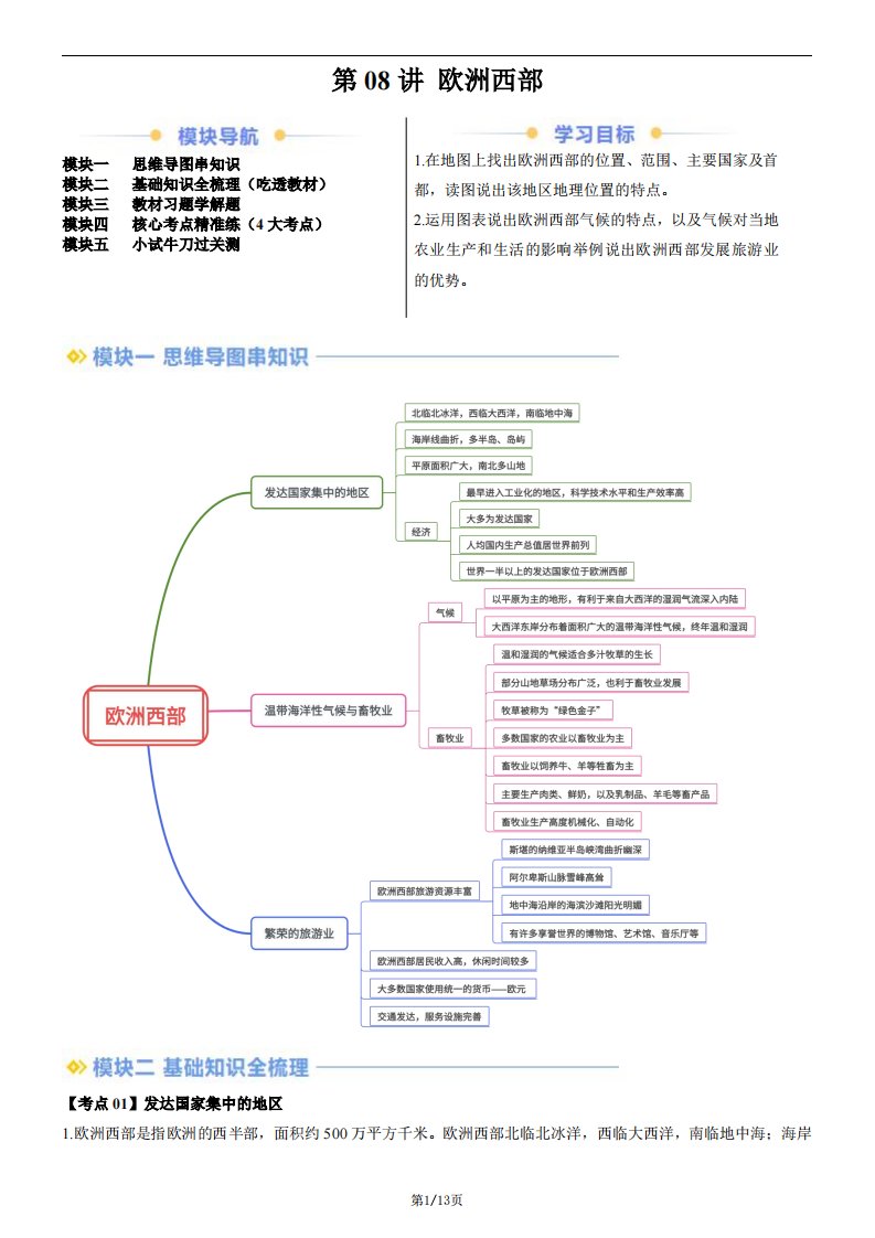 【七下人教地理】第08讲 欧洲西部(含答案)QXDLRJ-0151