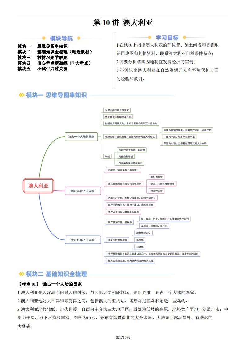 【七下人教地理】第10讲 澳大利亚(含答案)QXDLRJ-0155