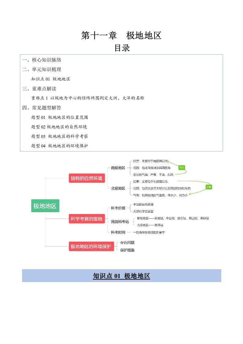 七下地理 第十一章 极地地区(知识清单)(含答案)QXDLRJ-0019