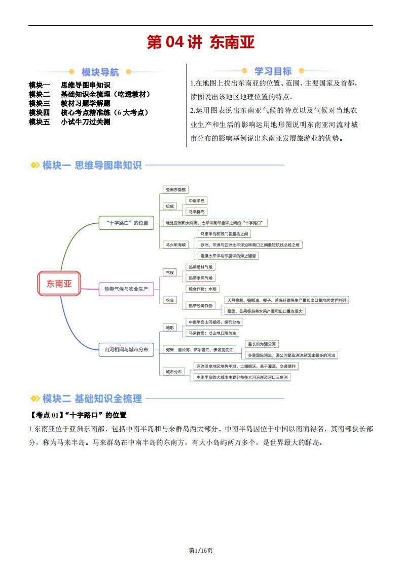 【七下人教地理】第04讲 东南亚(含答案)QXDLRJ-0143