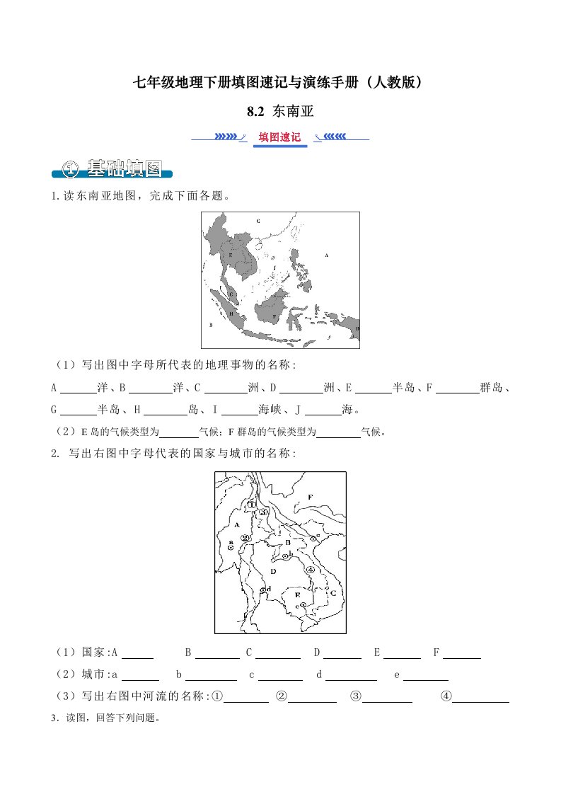 七下地理 8.2东南亚(填图速记)-(人教版)(含答案)QXDLRJ-0073