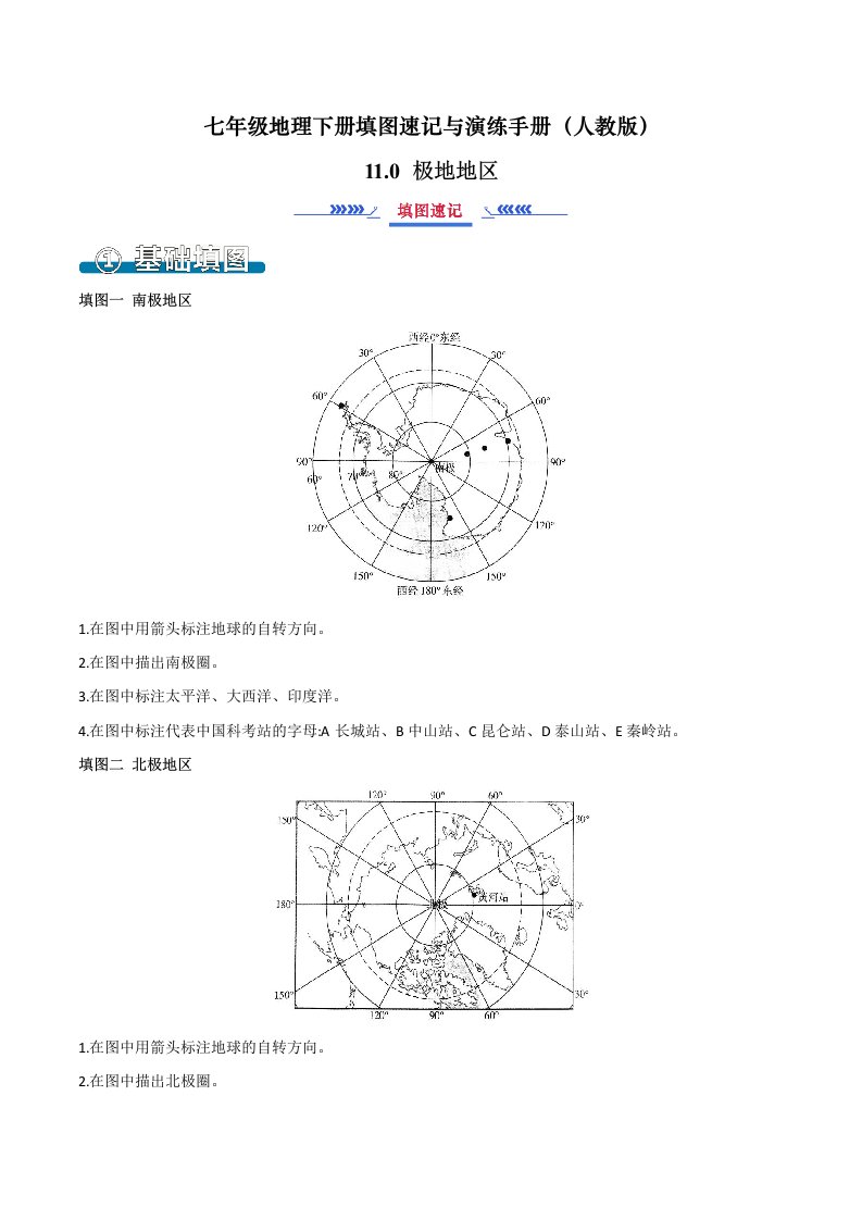 七下地理 11.0极地地区(填图速记)-(人教版)(含答案)QXDLRJ-0067