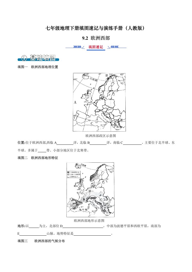 七下地理 9.2欧洲西部(填图速记)-(人教版)(含答案)QXDLRJ-0081