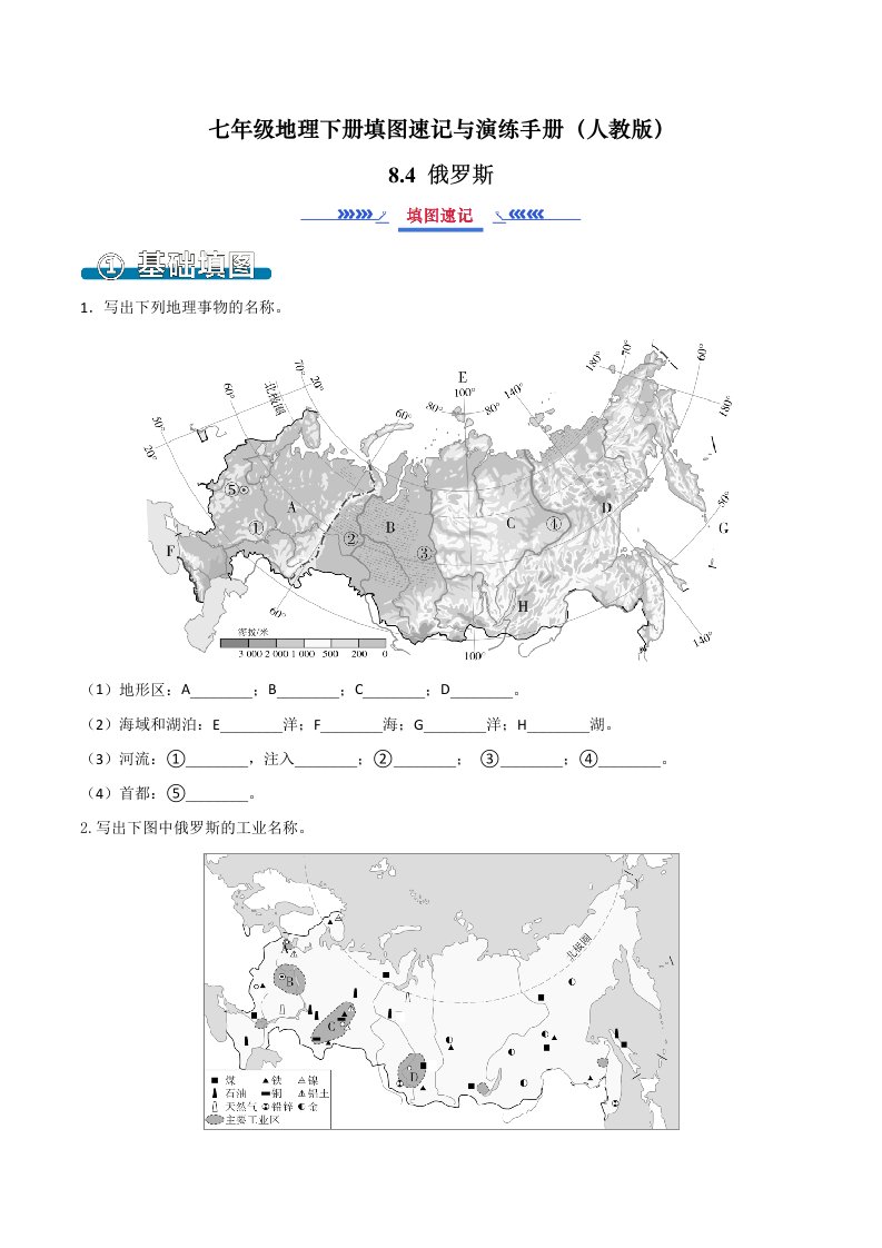 七下地理 8.4俄罗斯(填图速记)-(人教版)(含答案)QXDLRJ-0077