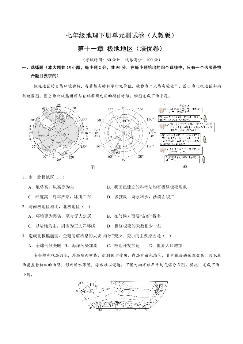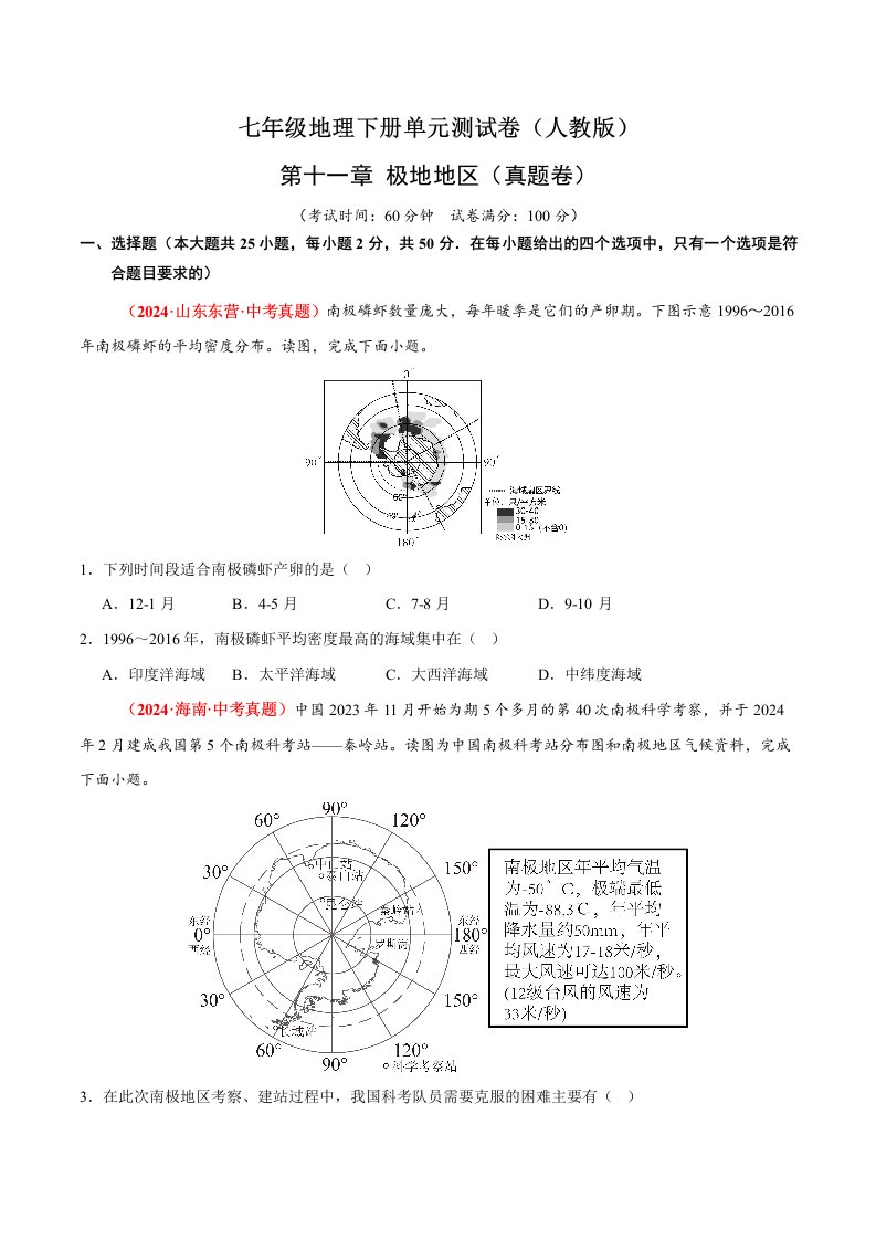 七下地理 第十一章 极地地区(B卷·真题卷)(含答案)QXDLRJ-0057