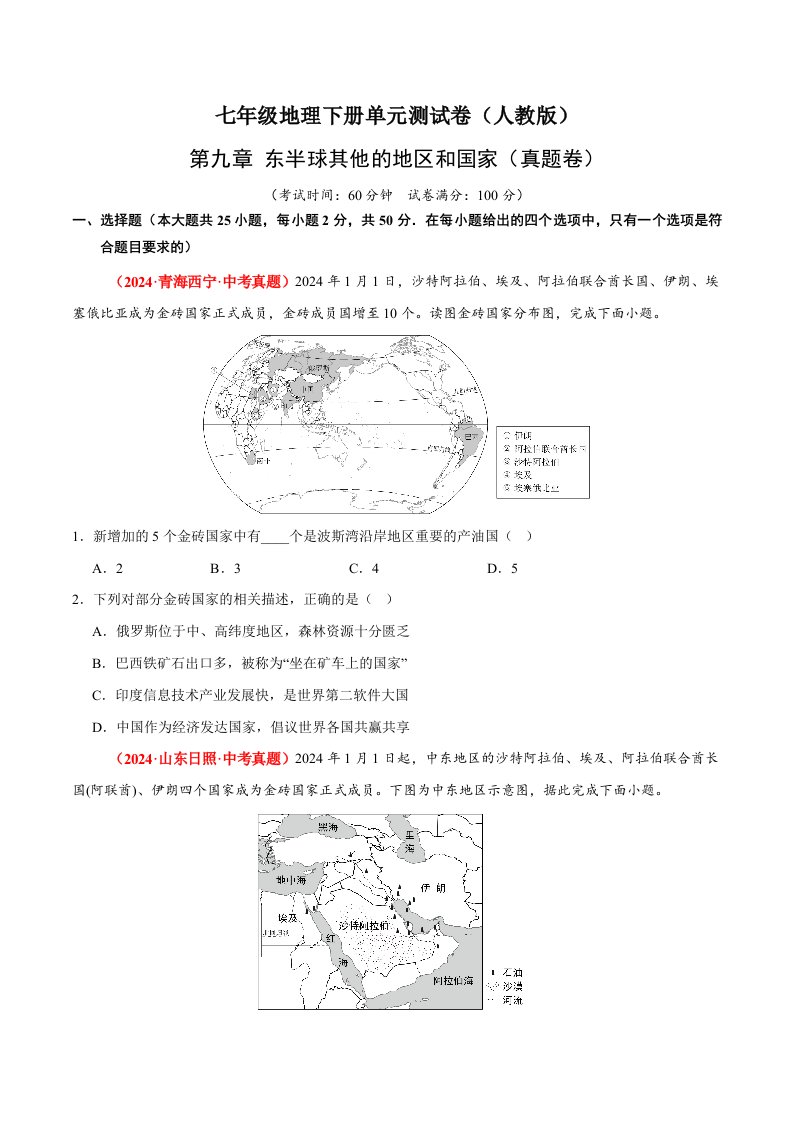 七下地理 第九章 东半球其他的地区和国家(含答案)QXDLRJ-0053