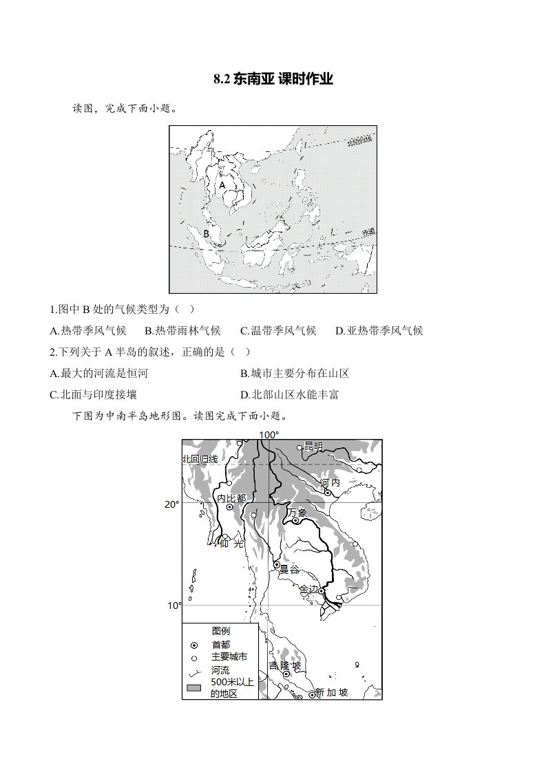8.2东南亚 课时作业(含解析)七年级地理人教版(2024)下册QXDLRJ-0031