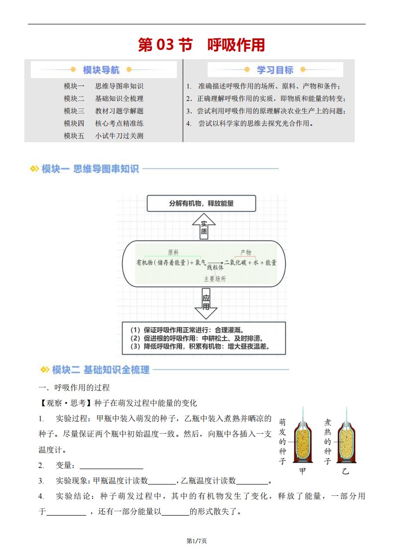 七下生物 第3节 呼吸作用(含答案)QXSWRJ-0025