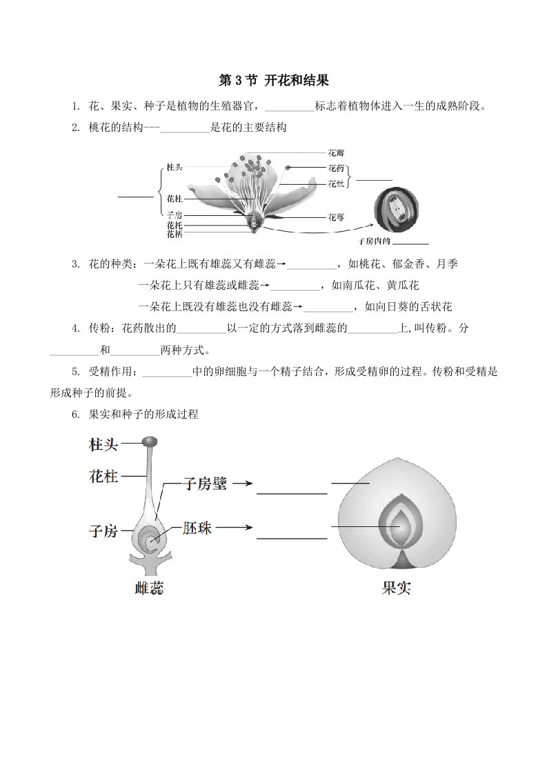 七下生物 第3节 开花和结果(含答案)QXSWRJ-0018