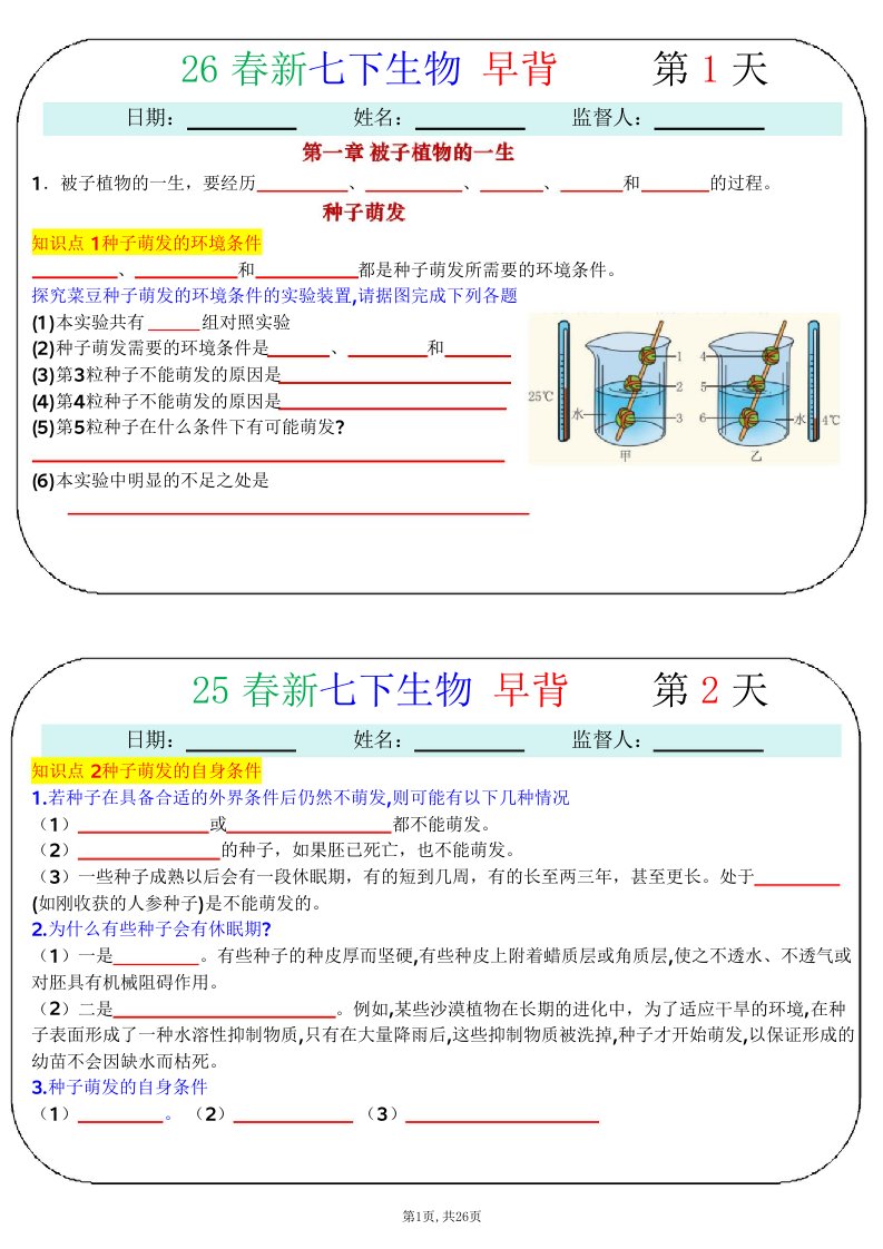 26春七下人教版生物默写小纸条--(含答案)QXSWRJ-0004