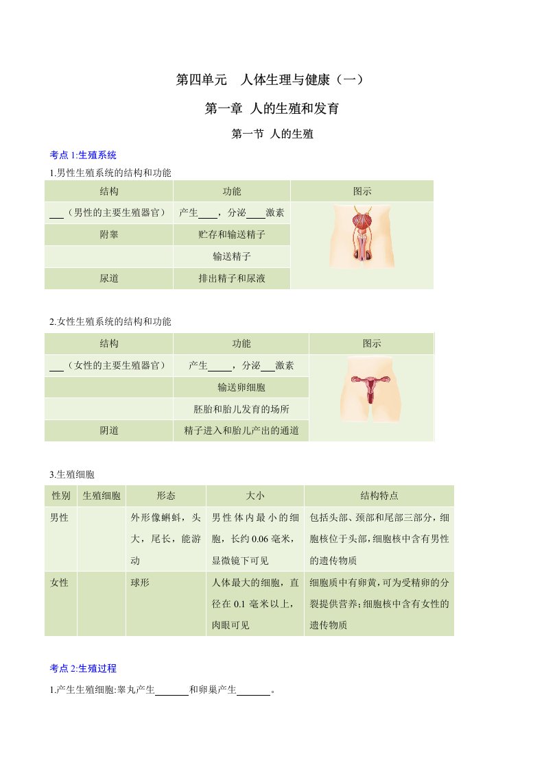 七下生物 第一章 人的生殖和发育(含答案)QXSWRJ-0030