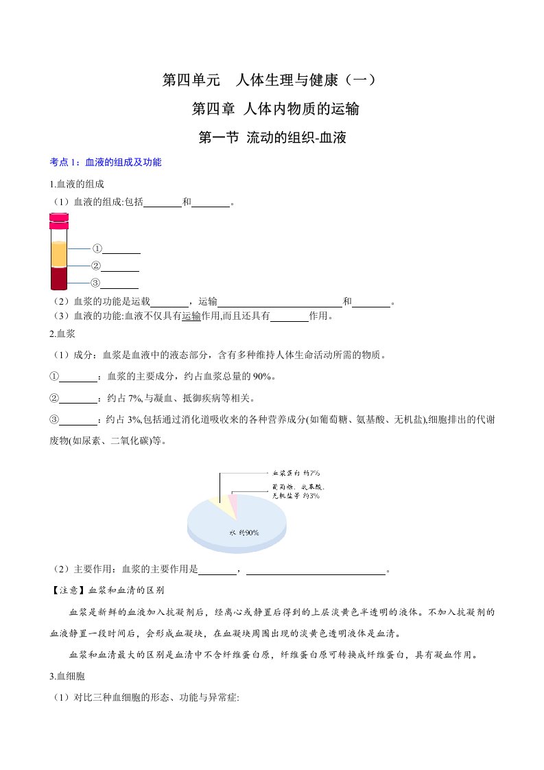 七下生物 第四章 人体内物质的运输 (含答案)QXSWRJ-0038