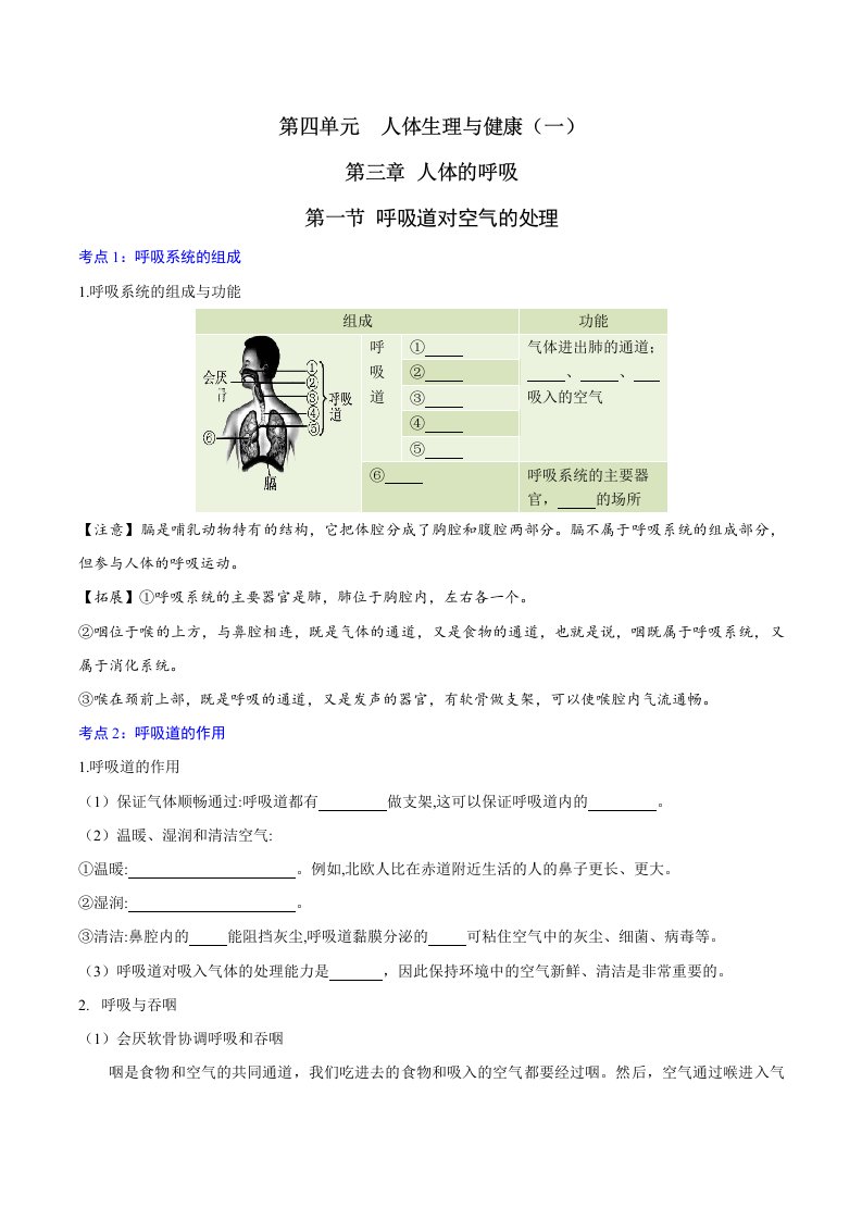 七下生物 第三章 人体的呼吸 (含答案)QXSWRJ-0032
