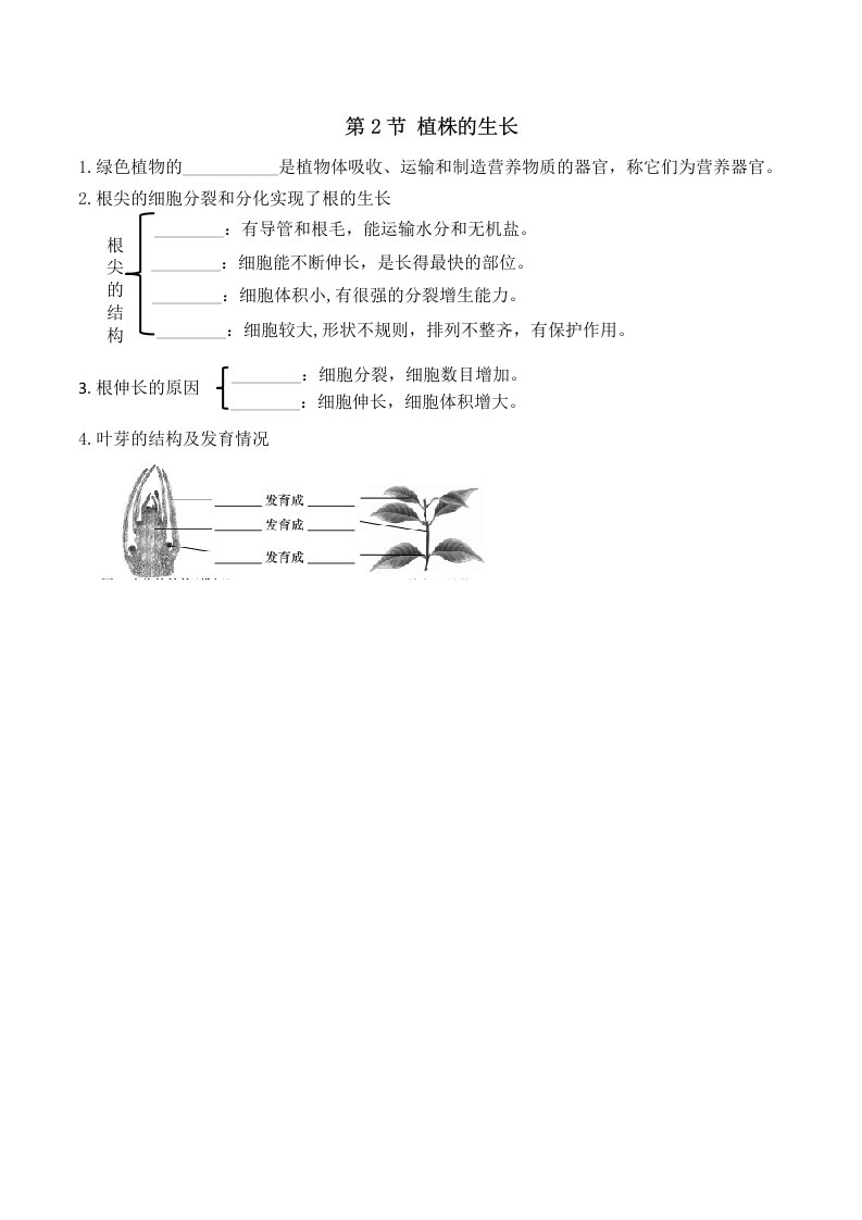 七下生物 第2节 植株的生长(含答案)QXSWRJ-0016