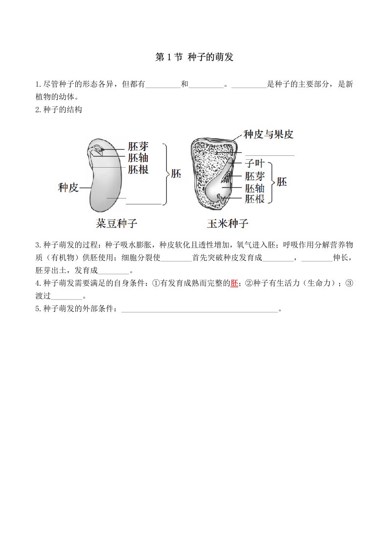 七下生物 第1节 种子的萌发(含答案)QXSWRJ-0014