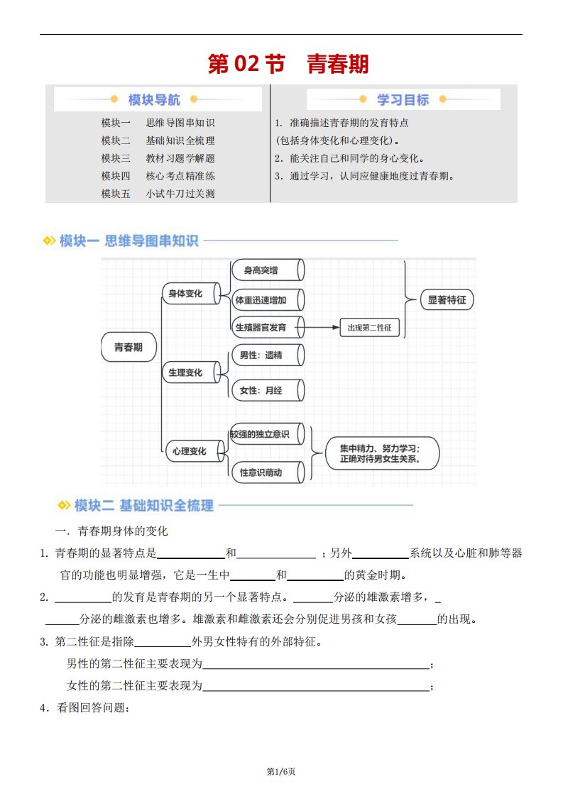 【七下人教生物】4.1.2 青春期(含答案)QXSWRJ-0150