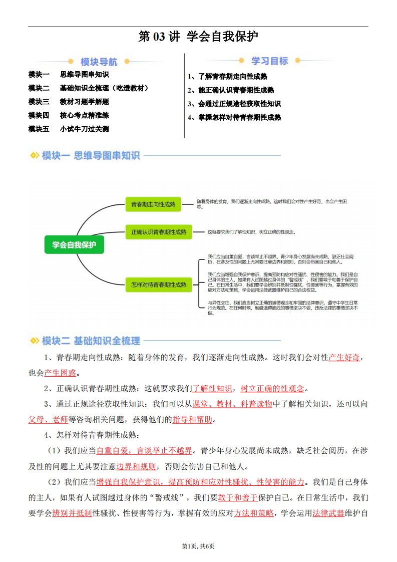【七下道法】第03讲 学会自我保护(寒假预习)(原卷版)(含答案)QXDFBB-0145