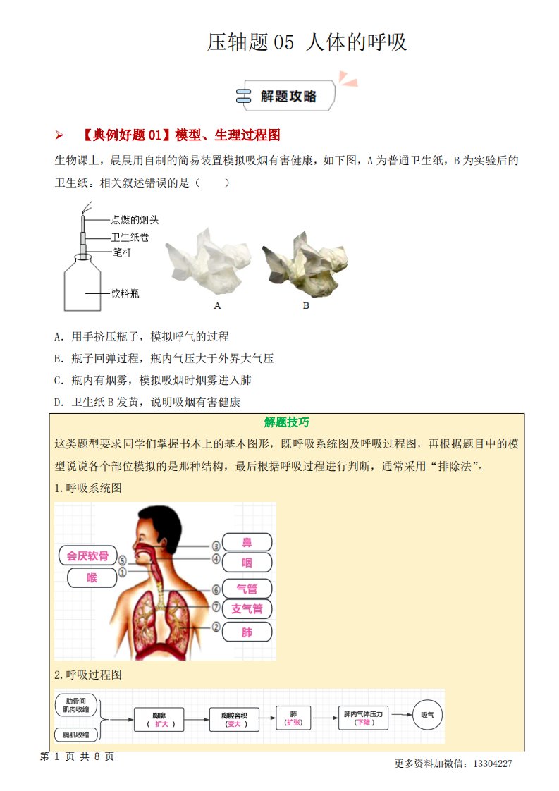【七下人教生物】压轴题05 人体的呼吸(含答案)QXSWRJ-0100