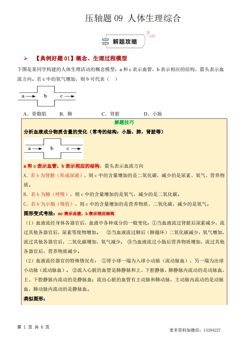 【七下人教生物】压轴题09 人体生理综合(含答案)QXSWRJ-0107