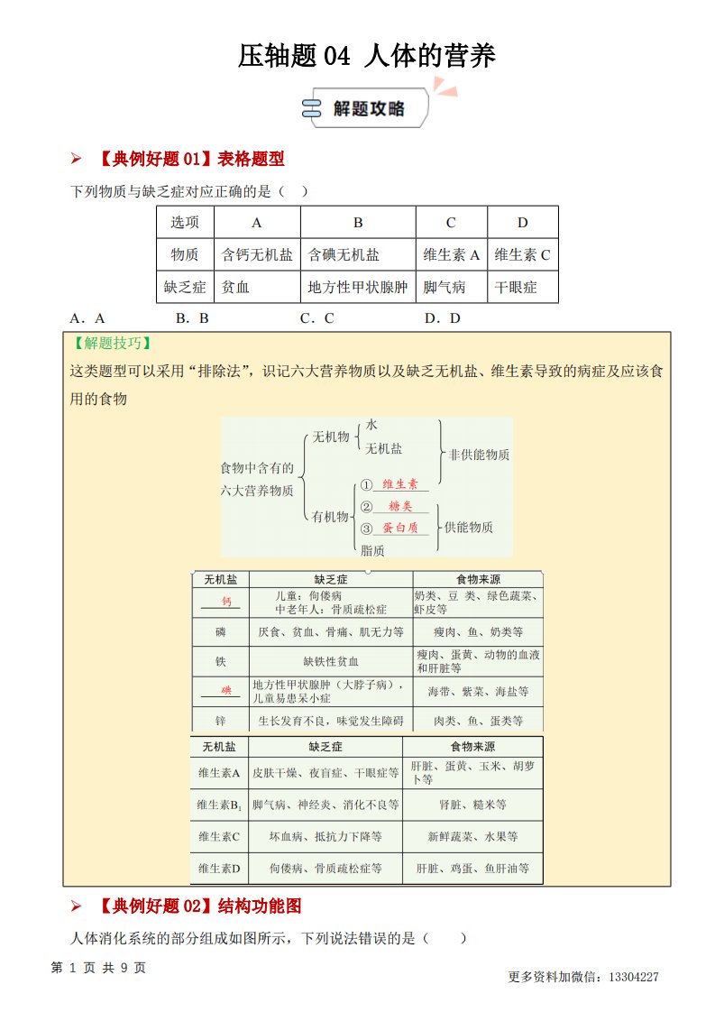 【七下人教生物】压轴题04 人体的营养(含答案)QXSWRJ-0098