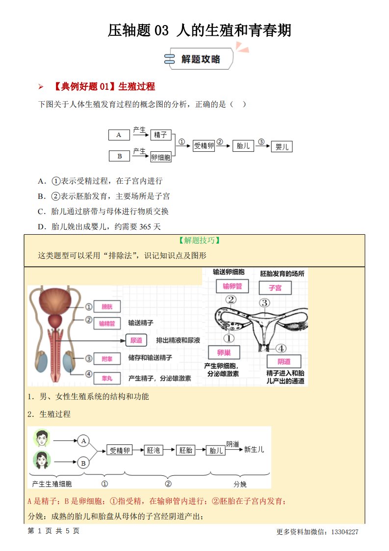 【七下人教生物】压轴题03 人的生殖和青春期(含答案)QXSWRJ-0096