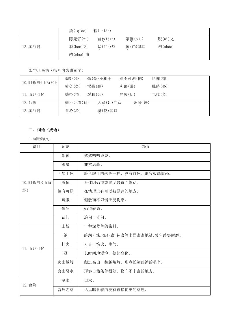 > 七下语文第三单元(单元知识清单)-(统编版)