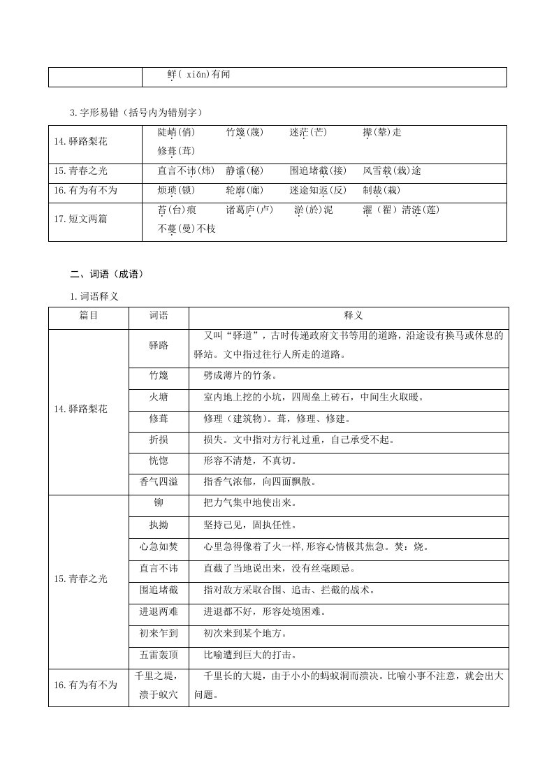 > 七下语文第四单元(单元知识清单)-(统编版)