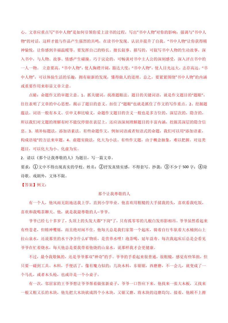 > 七年级语文作文专题01 写出人物特点(统编版)QXYWBB-0204