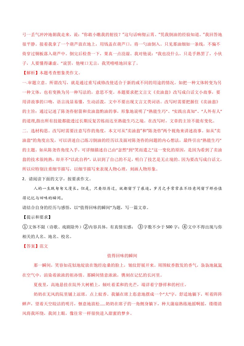 > 七年级语文作文专题03 抓住细节(统编版)QXYWBB-0206