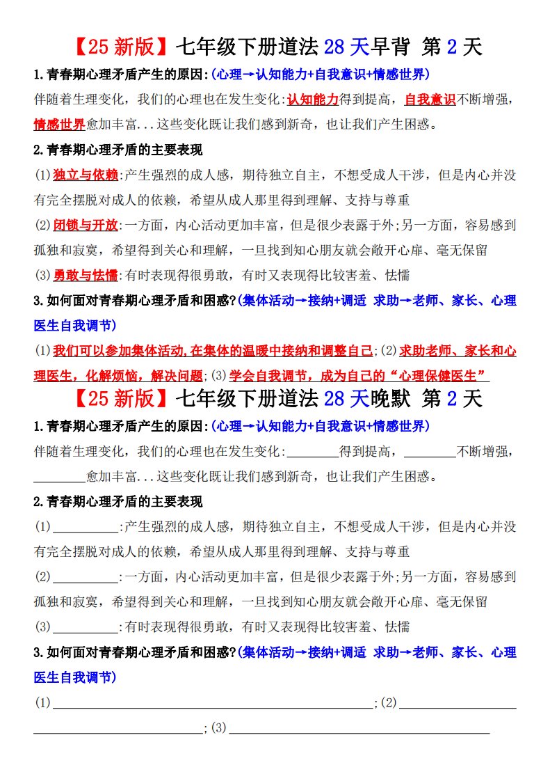 > 02-七年级下册道法28天早背晚默QXDFBB-0003