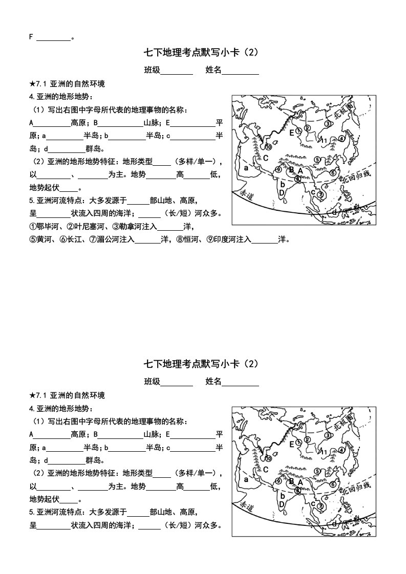 > 七下地理考点默写小卡QXDLRJ-0007