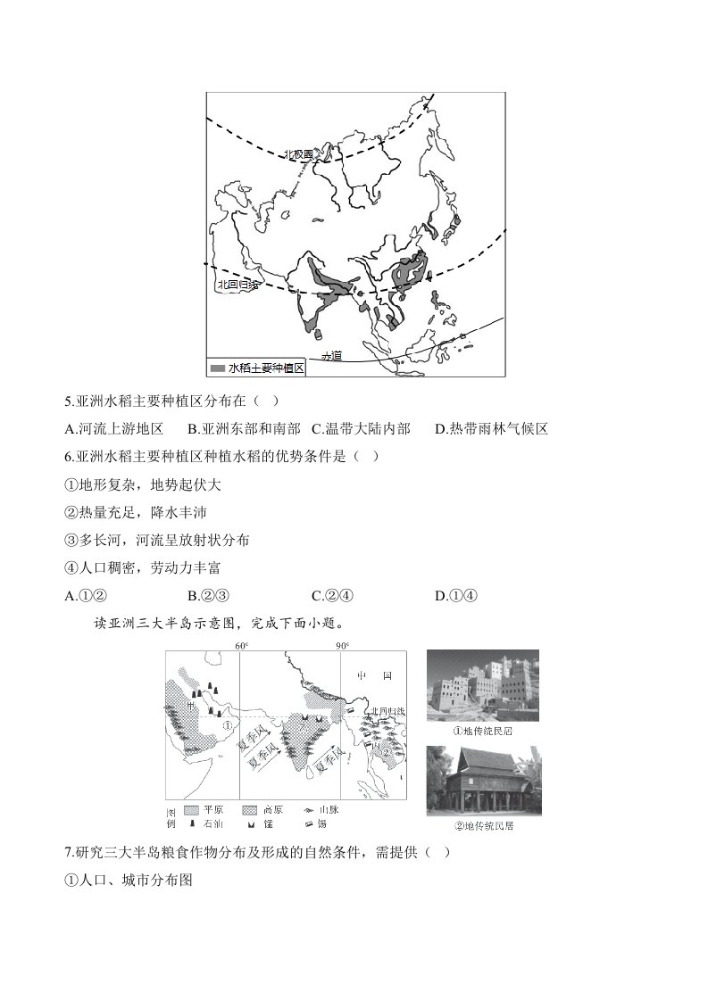 7.2人文环境 课时作业(含解析)七年级地理人教版(2024)下册QXDLRJ-0029
